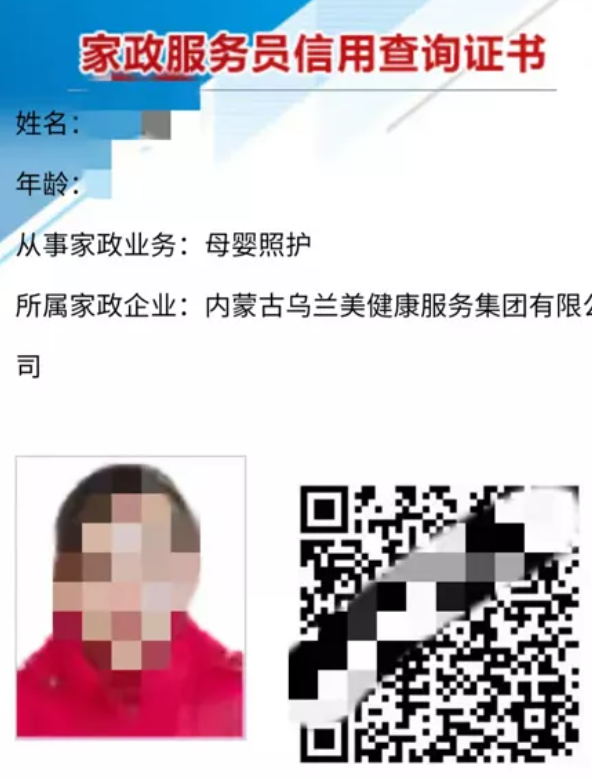 那就是非常重要的家政服務(wù)員信用查詢證書!